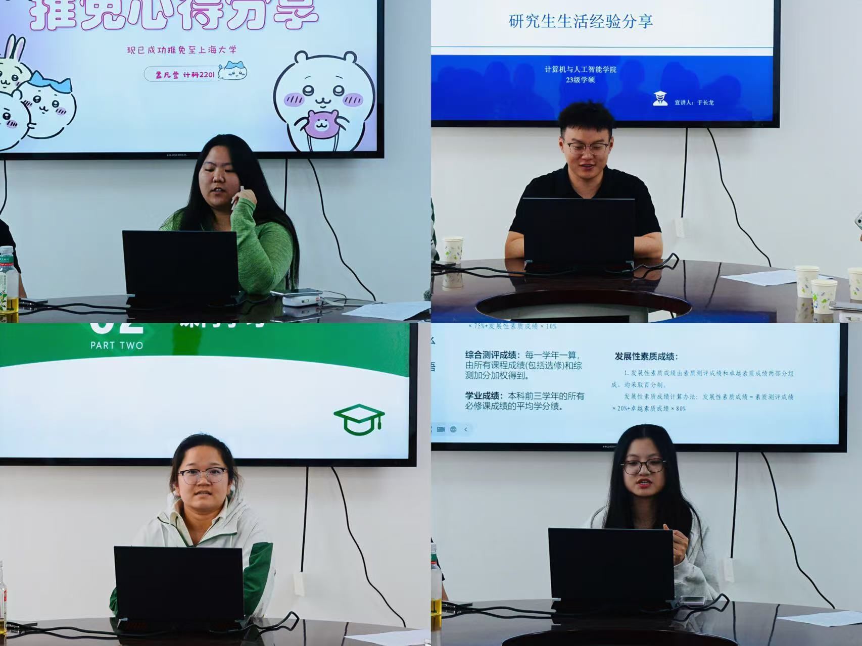 的推免政策,分享了绩点提升、科研实践、竞赛组队的实用技巧,她建议大家提前组建竞赛团队,培养团队默契,为保研之路积累硬核实力。推免至山东大学的栾萍萍以“大学四年规划与保研核心准备”为主题,为同学们系统讲解了课内学习、科研竞赛、推免时间线三大保研核心内容。不仅倾囊相授数学、编程、专业课等核心课程的高效学习方法,还针对性推荐了ACM、数学建模、“互联网+”等高含金量竞赛项目。推免至上海大学的孟凡萱以“一个月零基础保研”的独特经历,分享了预推免阶段的实战技巧和海投经验,重点讲解了简历制作、英语口语准备、专业课知识复盘等核心要点。