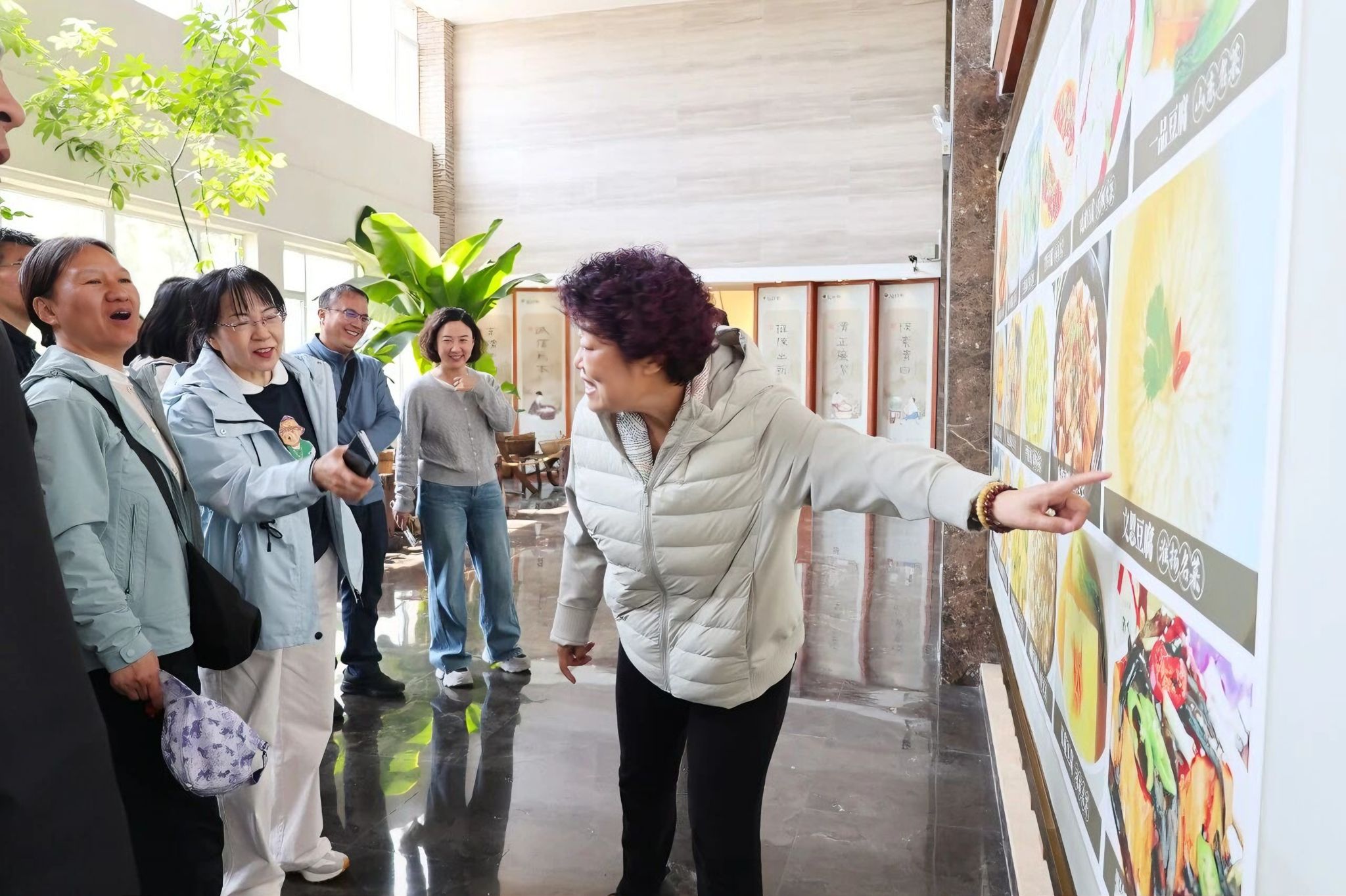 讲解员带大家一同了解中国各地豆腐名菜的由来与口感,每一道菜品都彰显着豆腐的包容性——可素可荤、可淡可浓,既能作为家常小菜,也能登上宴席台面。大家看着各式各样的豆腐菜,分享着自己记忆中豆腐菜的味道,畅谈着对不同豆腐菜品的口味和见解,言语中都是对烟火生活的热爱。